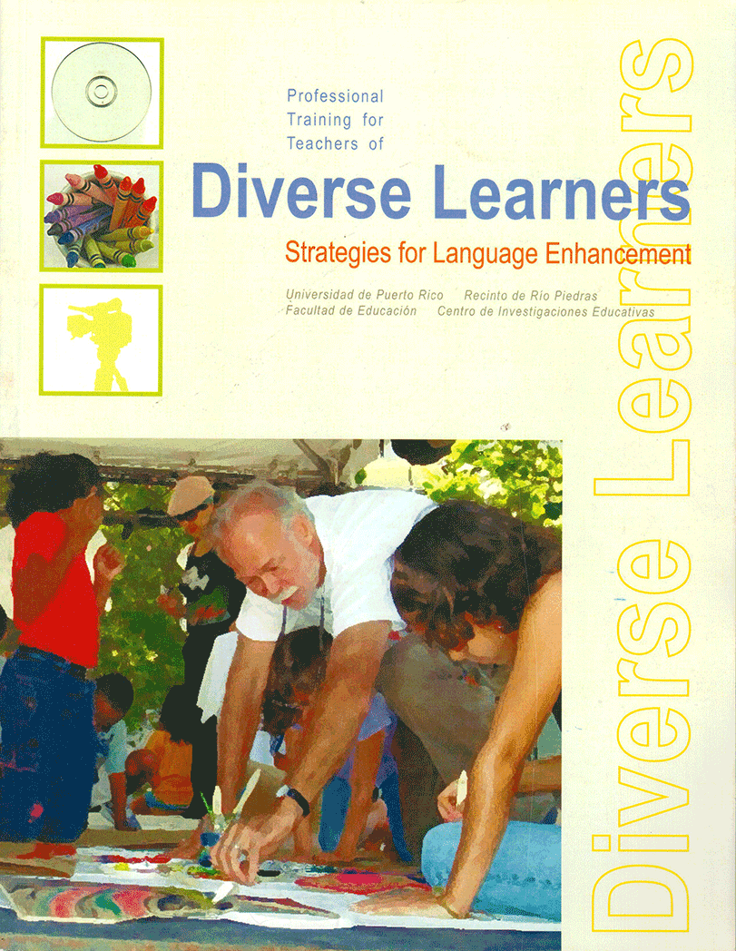 The Professional Training for Teachers of Diverse Learners: Strategies for Language Enhancement project was sponsored by the Center for Educational Research of the College of Education of the University of Puerto Rico at Río Piedras and the Council of Higher Education of Puerto Rico with funds of No Child Left Behind Law (NCLB-08-13). The purpose of this project was to achieve a high degree competent educator who can implement teaching strategies pertinent to the educational growth of diverse learners. To reach this goal, the project facilitated the professional development of approximately 60 teachers from public and private schools. The areas covered visual and performing arts, music, curriculum alignment, state of the art technology, and assessment strategies, as integrated to the teaching of English to diverse learners for a better academic achievement. The project also promoted and disseminated participants’ strategic planning through the design of curricular matrix(es) based on standards of excellence. This manual includes the lessons designed by Project participants and illustrate how to integrate the visual arts, music, and technology to the teaching of English so that students may have the opportunity to learn from those strategies and have practical experience with them.